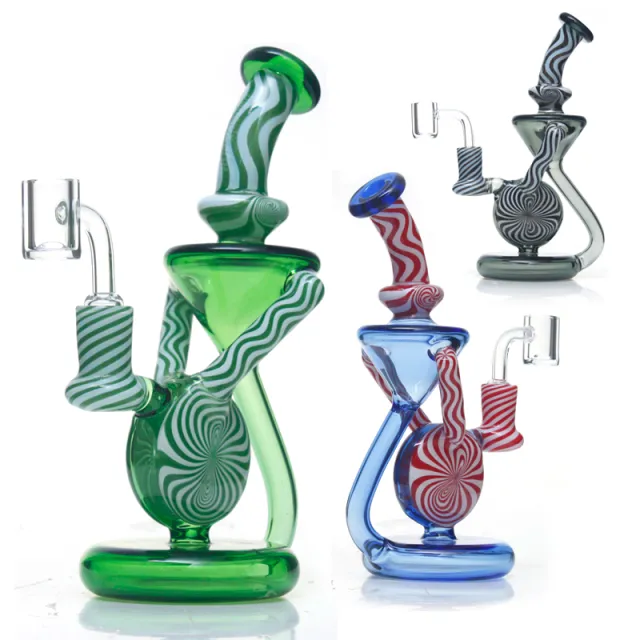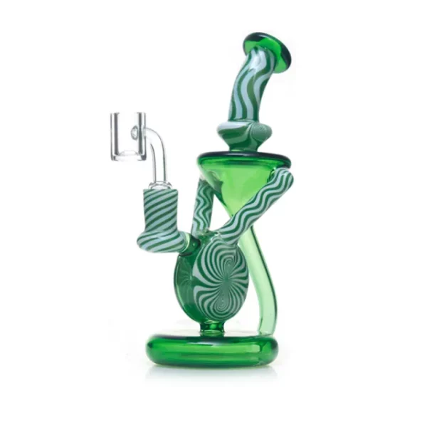 Phoenix Star Recycler Dab Rig with Insert Perc & American Northstar Glass Rod PHX639 is made of premium boros glass and American Northstar Glass Rod with an unforgettable appearance. 3 recycler tubes connect the two chambers, providing continuous filtration and airflow for smokers. Its curved mouthpiece can prevent your lips from being wet. This recycler bong also features an insert perc to diffuse your smoke when it enters. The recycler oil rig is equipped with a 14.4mm male quartz banger to allow smokers to get the ideal temperature faster for the purer flavor. If you are a new dabber, phoenix star PHX639 is perfect for you. 3 colors in stock.